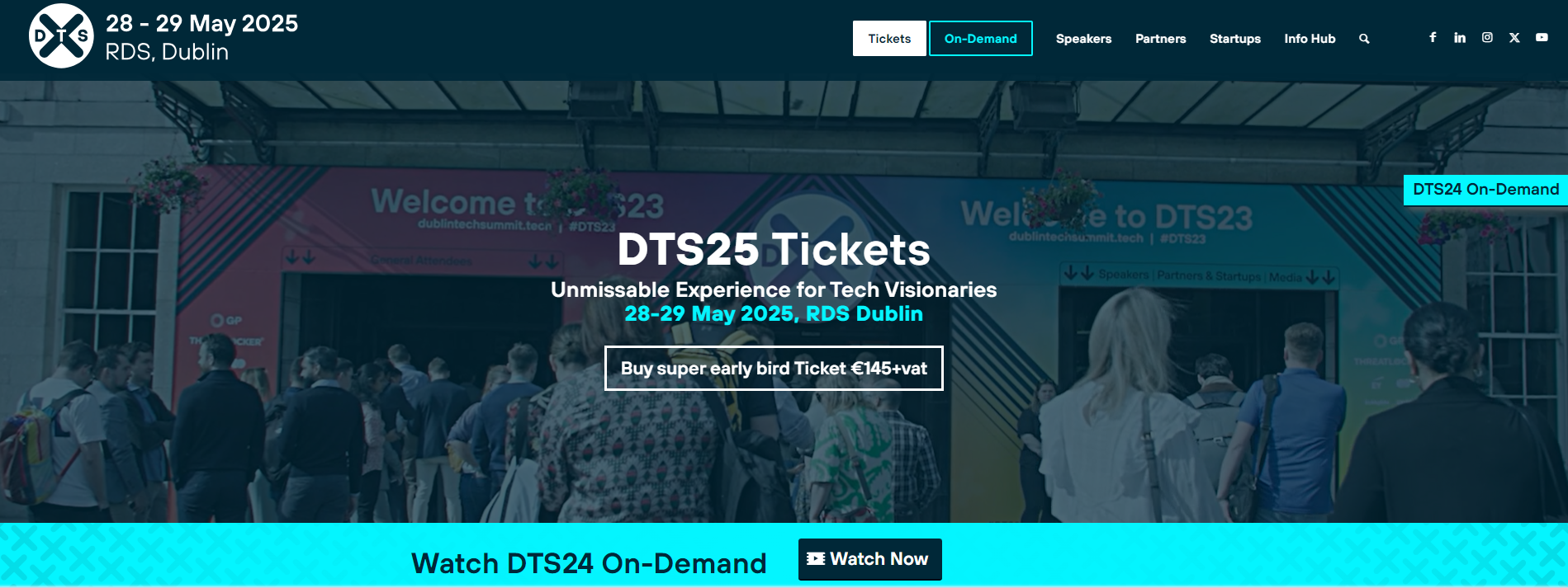 Dublin Tech Summit is one of the biggest B2B tech conferences in Europe. It brings together 8000 attendees from various industries, including global leaders in innovation, technology, and business, to shape the future of global trends. It features diverse sessions, including keynote speeches, panel discussions, workshops, and exhibitions. Topics covered at the event include emerging technologies, AI, robotics, machine learning, drone deliveries, cybersecurity, blockchain, space exploration, "Tech for Good," "Diversity in Tech," big data analytics, and much more. The conference is known for its focus on innovation and the startup ecosystem, with dedicated spaces for startups to showcase their products and ideas to potential investors and partners.