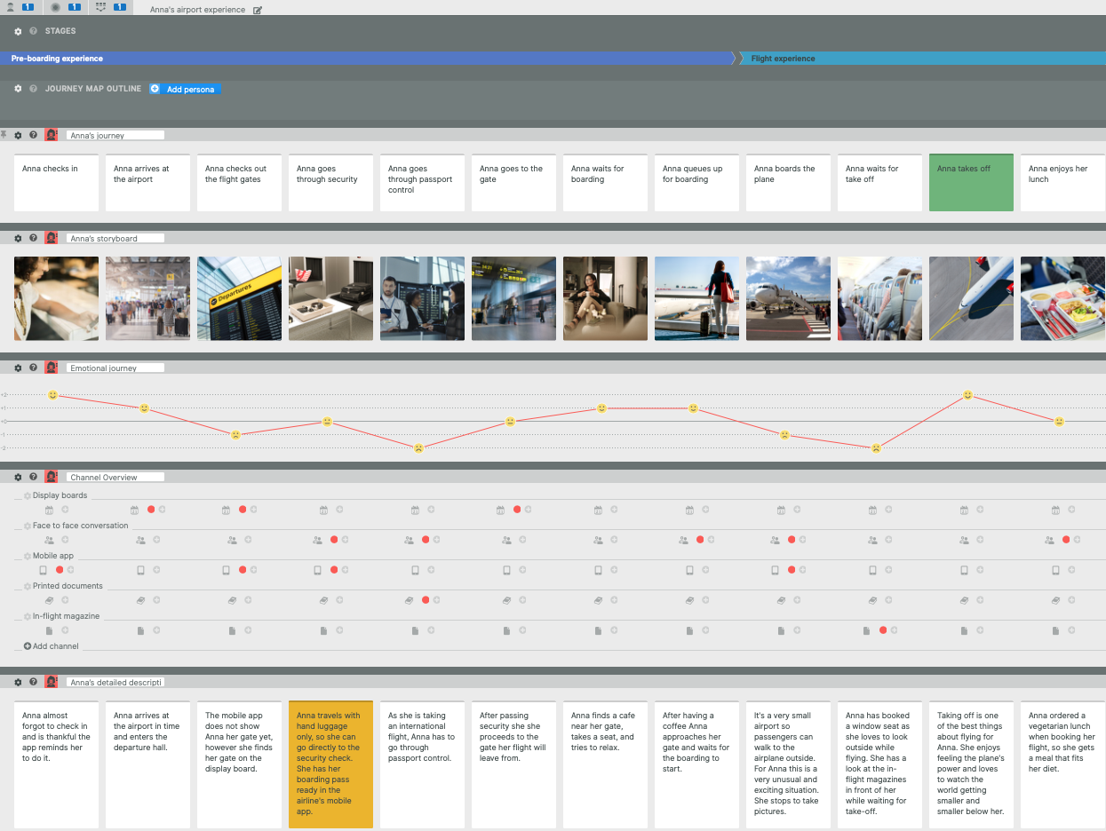 Smaply is a visual customer experience management software with two versions: a classic Smaply and a forthcoming "3.0" version (access granted in batches). The classic version enables creating customer journey maps, personas, and stakeholder maps. Journey maps allow you to add various important details of each touchpoint in a drag-and-drop manner and visualize your customer's journey using images, texts, emotions, channels of communication, etc. The persona editor allows the creation and customizing of persona templates for different target groups. The mapping tool for stakeholders helps companies visualize the ecosystem of their product or service and identify formal and informal relationships between employees, clients, and suppliers that influence your service.