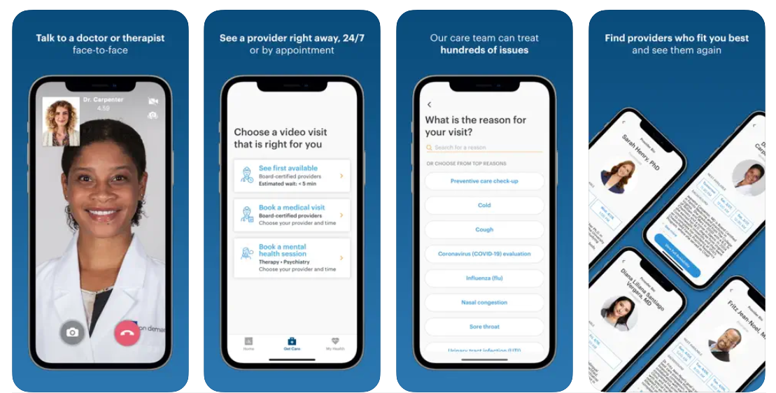 Doctor on Demand is a telemedicine app that offers 24/7 online urgent care. The app provides access to certified online doctors, psychiatrists, psychologists, therapists, and other medical experts. They can treat various problems, from colds and flu to asthma, urinary tract infections, headaches, skin conditions, depressions, and chronic disease.