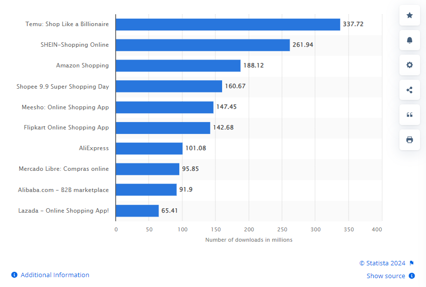 Leading shopping apps worldwide in 2023, by number of downloads